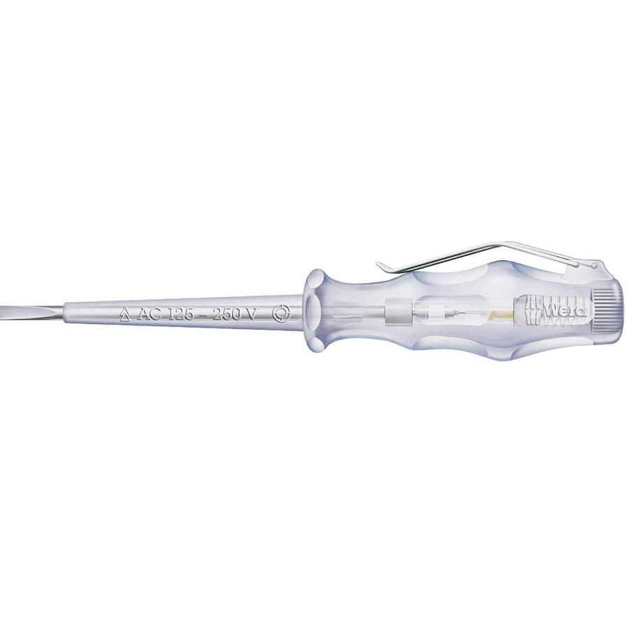 Probador monopolar de fases hasta 250 V de tensión alterna. Con clip de fijación práctico.