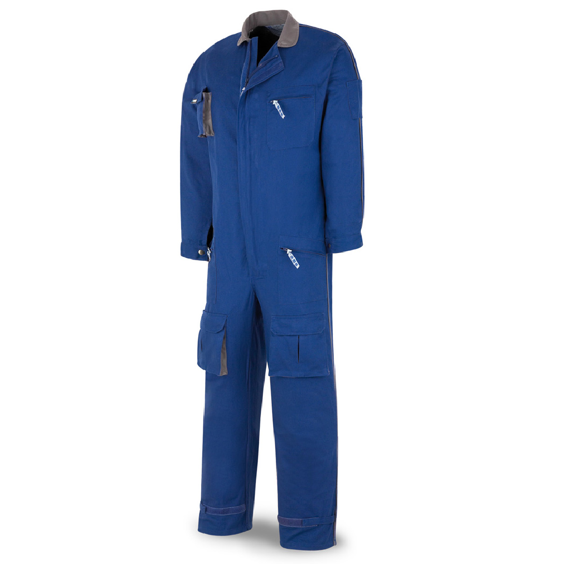 Confeccionado con triples costuras. Fuelle en espalda y refuerzo de culera. Detalles en color gris. Ajuste en tobillos mediante velcro. Cierre de puños mediante botones a presión. Cremallera de dientes ancho y cierre por tapeta con velcros. Falsos bolsillos con acceso al pantalón que pudiese llevarse debajo.