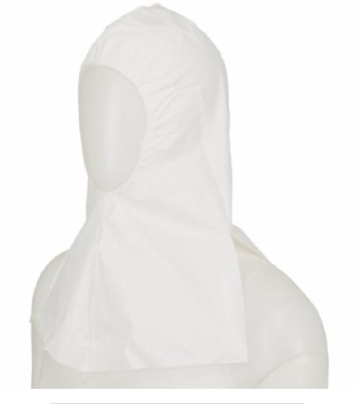 Capucha fabricada con el mismo material laminado, tejido de baja pelusa utilizado en la prenda de protección 3M™ 4510. La capucha ofrece una barrera general frente a sustancias no peligrosas, con cortinas sobre los hombros que ofrecen una cobertura excelente.