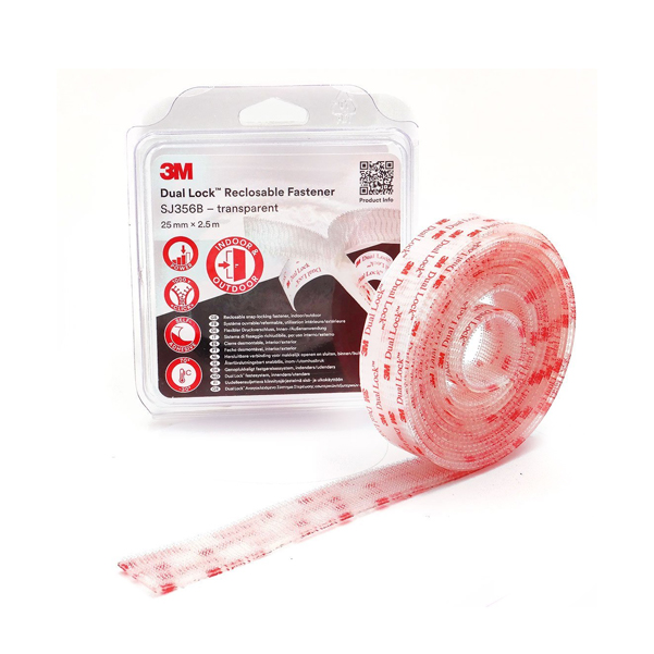 CINTA REPOSICIONABLE TRANSPARENTE VELCRO DUAL-LOCK 25MM 2,5MT SJ3560T25 3M