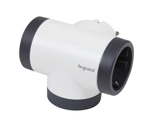 Clavija con enchufe, doble función para conectar 2 aparatos a la misma toma de corriente 2P+T 16A 250V 3680W. Blanco.