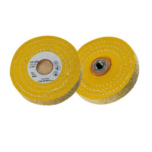Rueda de sisal y tela utilizada para el pulido del acero inoxidable. Incluye Métrica 14 para un acople rápido en cualquier máquina radial.