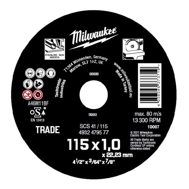 DISCO CORTE METAL TRADE 115X1.0 MM REF,4932479577 MILWAUKEE