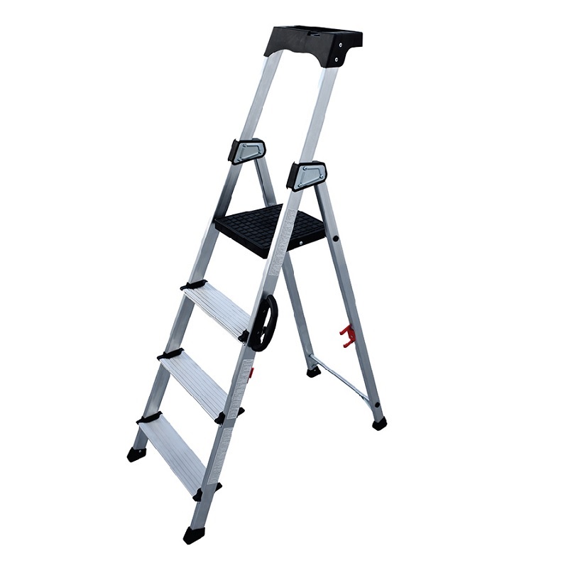 Escalera de aluminio de estructura ligera y fácilmente transportable gracias a su práctica asa.