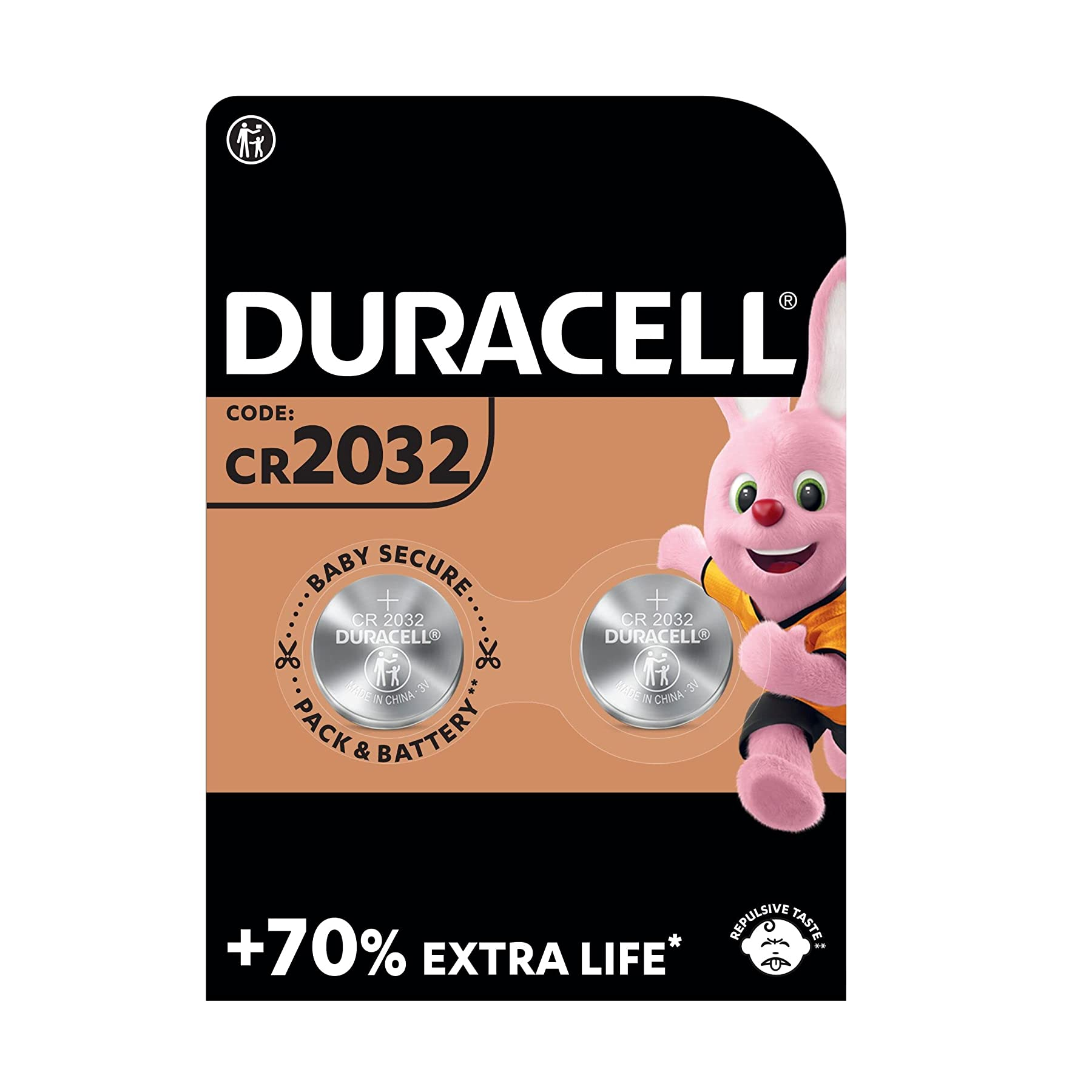 Pilas especiales Duracell de botón de litio 2032: +70% extra duración* (*respecto a la duración media mínima de la prueba estándar de potencia de servicio del IEC para pilas de botón de litio 2032. Los resultados pueden variar según el dispositivo y uso)