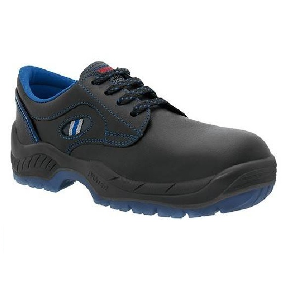 Zapato de seguridad con cordones fabricado en materiales de resistencia y durabilidad extraordinaria. Horma ergonómica y extra ancha, que ofrece un ancho especial y gran estabilidad.